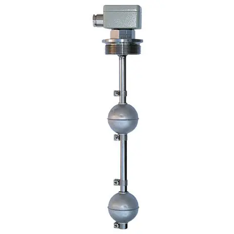 Volledig RVS multi-vlotterschakelaars zijn verkrijgbaar met een tot vijf schakelpunten. Deze niveauschakelaars voor bovenmontage worden speciaal op maat gemaakt in elke gewenste lengte tot een meter. Met de standaard 1" BSP aansluiting kunnen de vlotters eenvoudig in een sok op de bovenzijde van een tank worden geschroefd.
